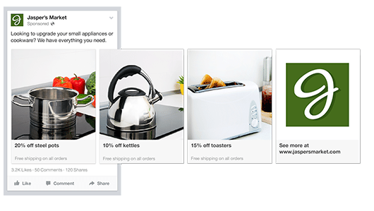 网格布局:您可以在网格布局中展示产品,以便用户可以从单个广告中浏览更多产品。