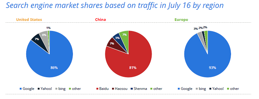 2016年,美国、中国和欧洲搜索广告收入将达到766亿美元,占全球搜索广告市场的84%。其中,美国搜索广告收入330亿美元,占美国网络广告市场的41%。2016年欧洲搜索广告收入200亿美元;中国搜索广告收入240亿美元,占中国网络广告市场的55%。